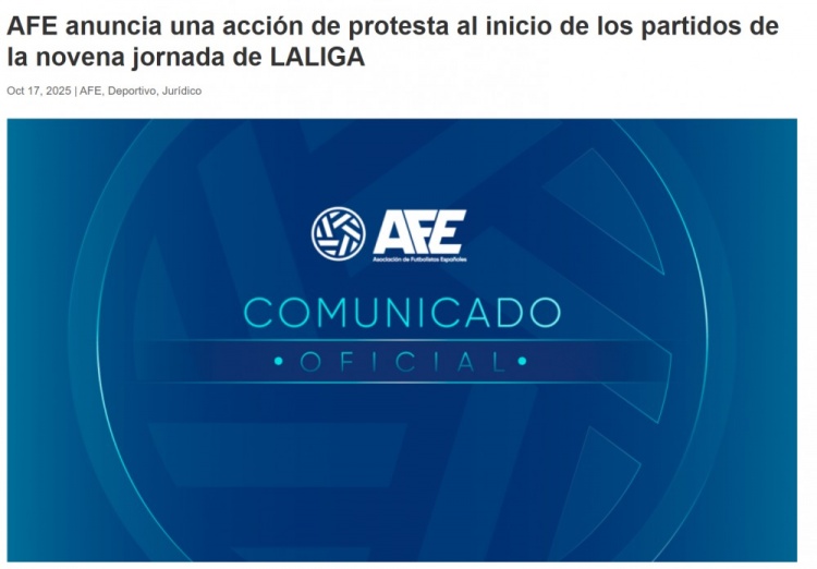 声明写道:AFE在西甲各队队长的支持下宣布,在西甲第9轮所有比赛开赛前进行抗议,以表达对西甲缺乏透明度、缺少对话和未能保持一致性的不满,特别针对在美国举办比赛的决定。